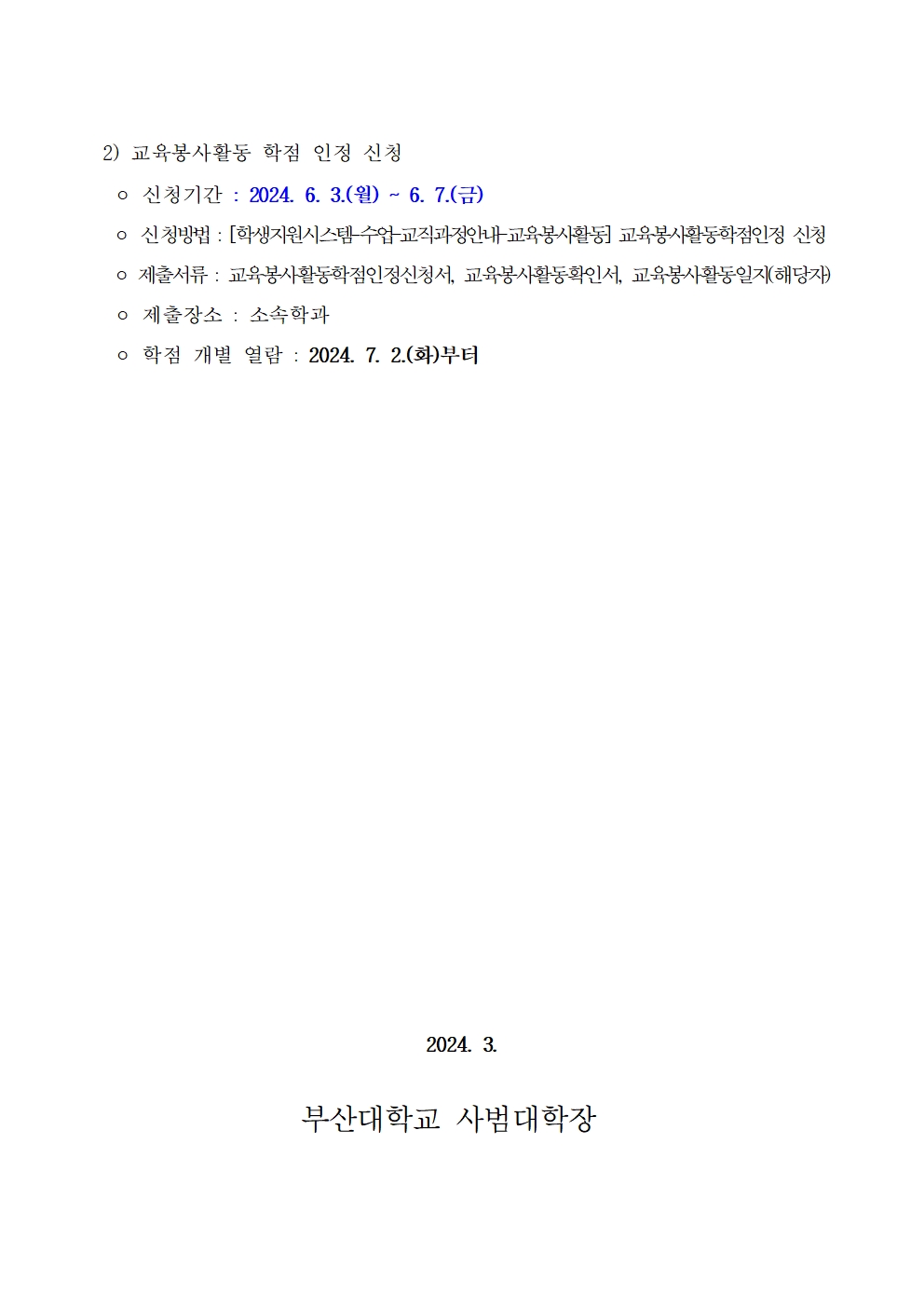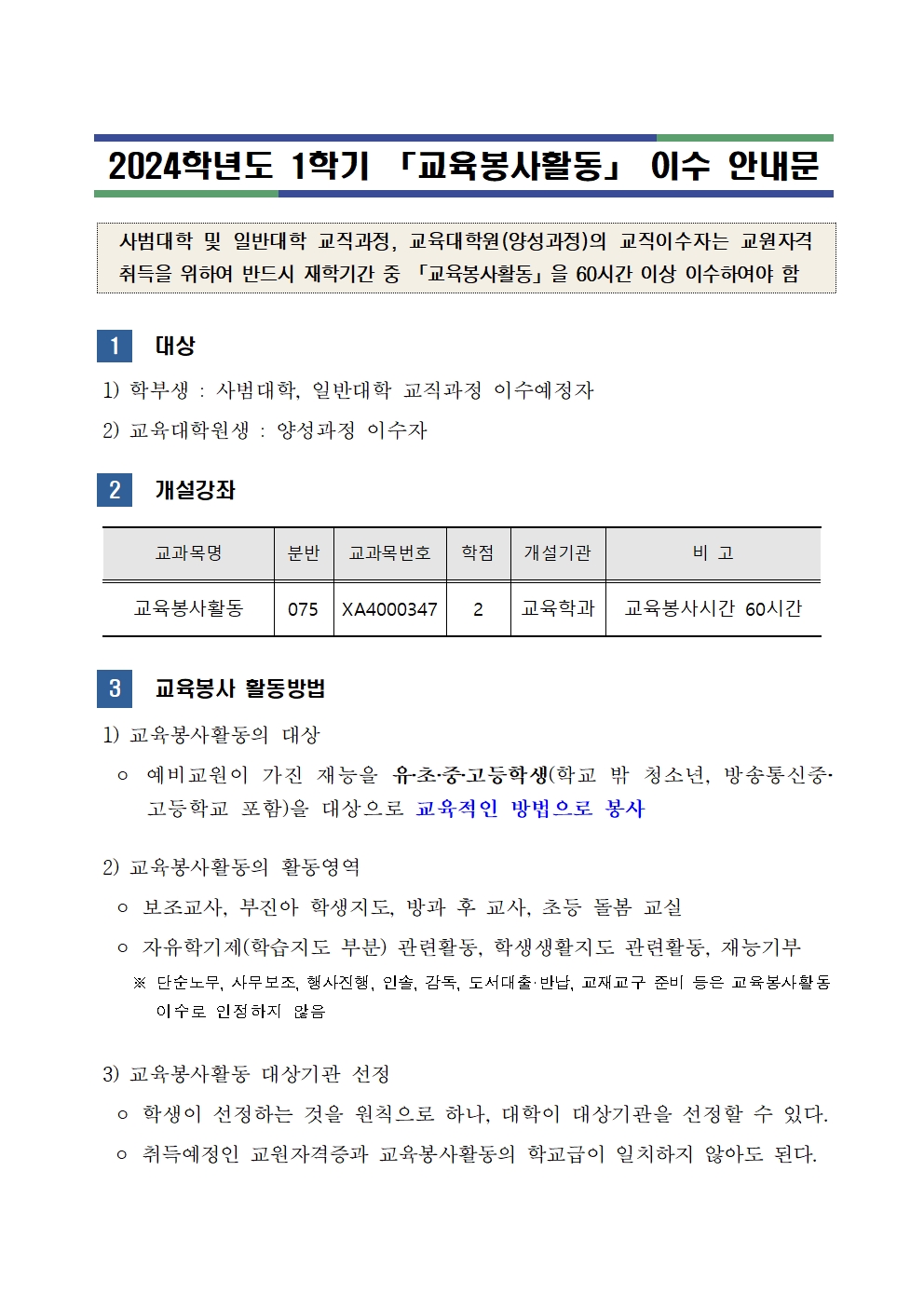 2025학년도 2학기 「교육봉사활동」 이수 안내문