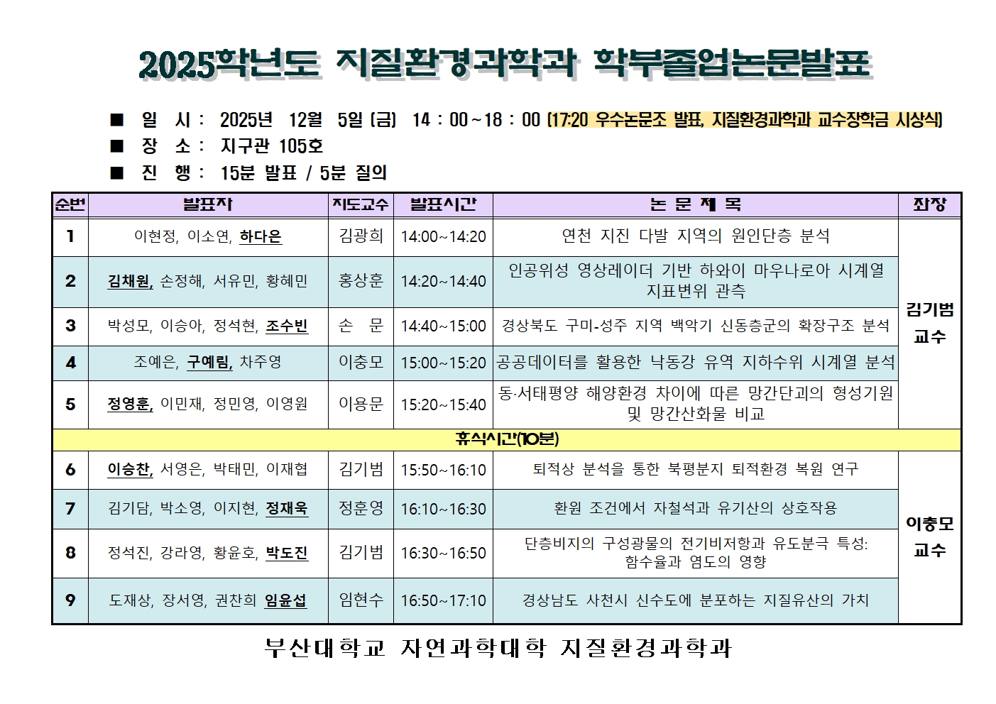 2025학년도 지질환경과학과 전체야외학술답사 일정- 추가 안내