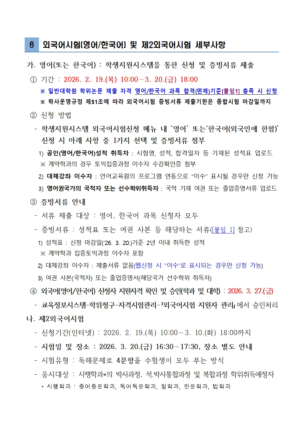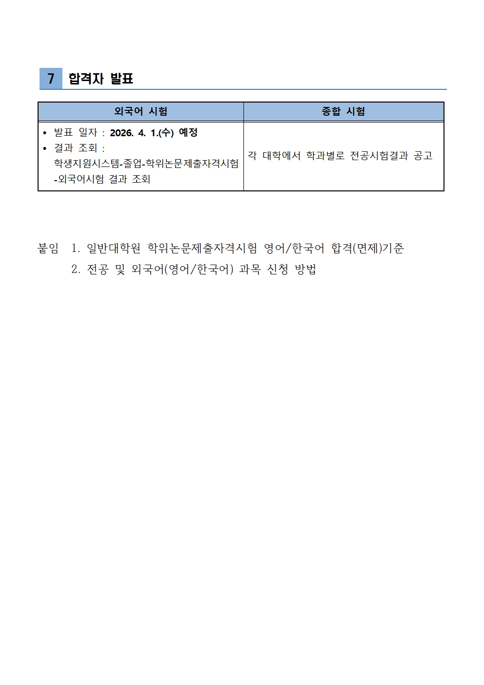 2026학년도 1학기 학위논문 제출 자격시험 시행 안내
