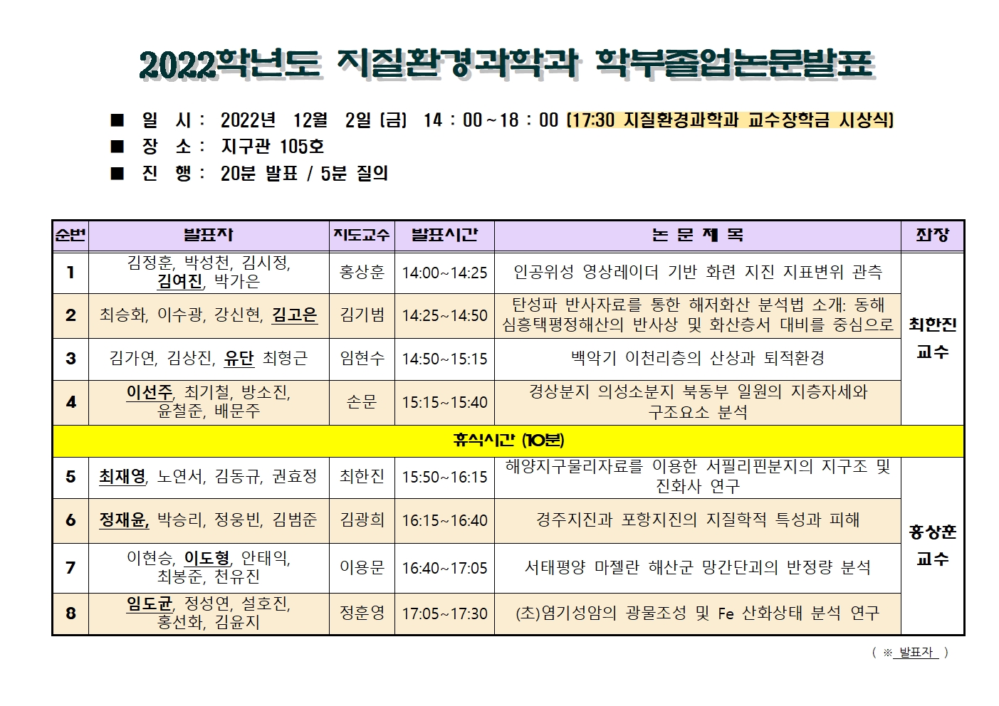 2022학년도 학부 졸업논문 및 교수장학금 시상식 안내