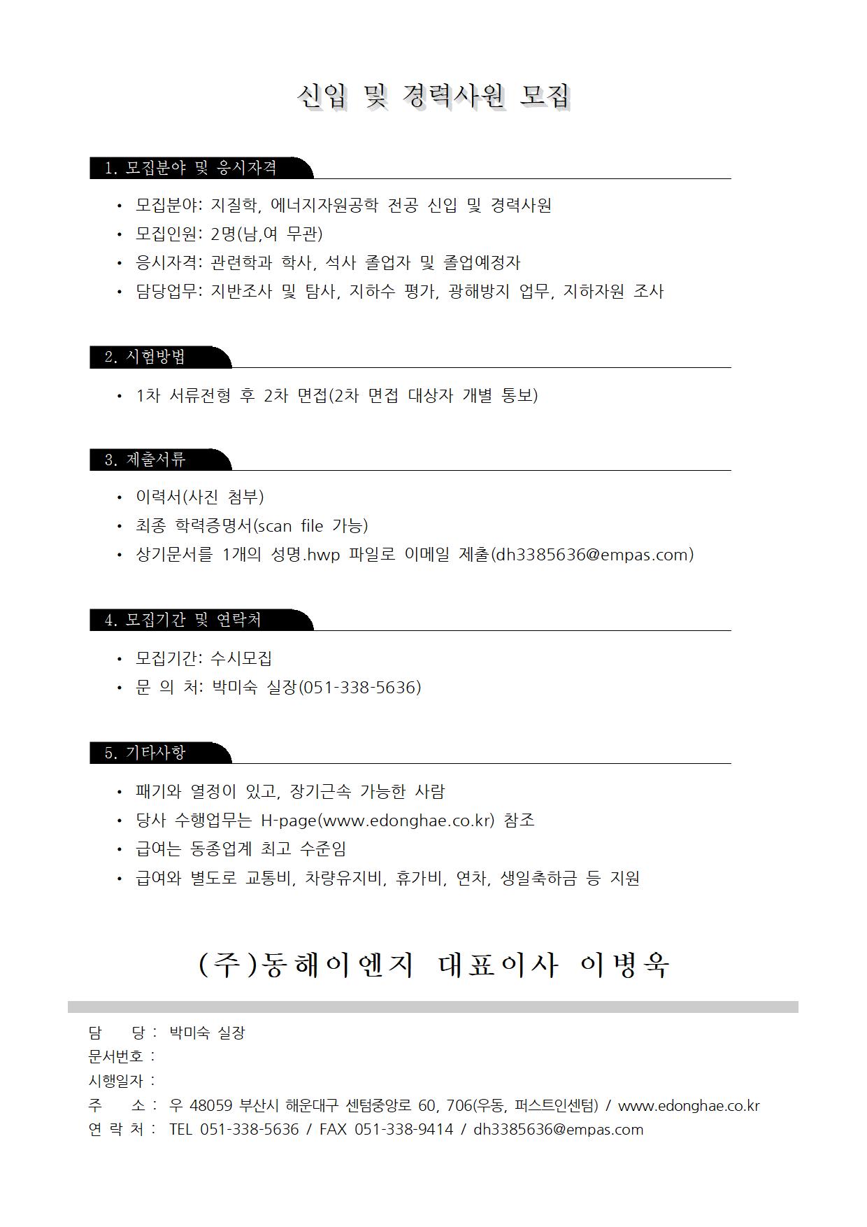 fnctId=bbs,fnctNo=2799 작성일 2021.11.29 수정일 2021.11.29 작성자 장주연 조회수 614 (주)동해이엔지 (지질학, 에너지공학) 사원모집 안내 첨부파일 첨부파일이(가) 없습니다.